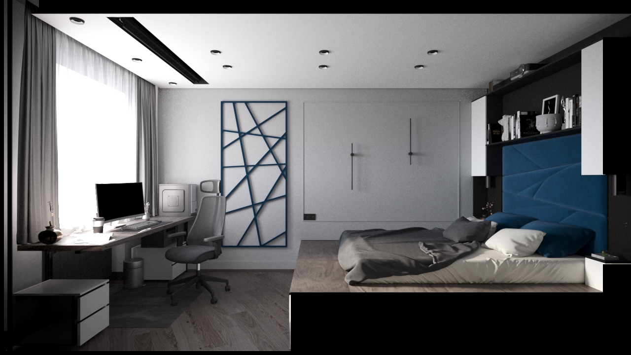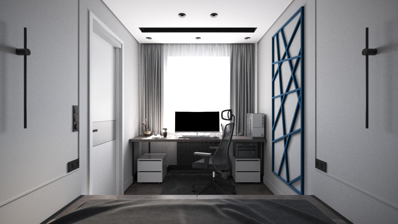Очень важная и сложная комната. Сочетает в себе, казалось бы, абсолютно разные вещи: отдых и работу. На самом деле эта комната как внутренний мир человека- зайдя в неё ты погружаешься в себя и личные мысли, в отличии от зала, коммуникативная функция которого, наоборот- объединяющая жильцов и гостей.